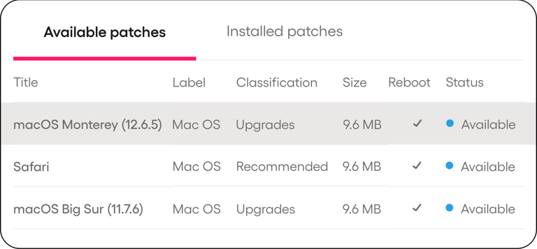 Patch Management for Mac ensures that your macOS devices are up to date with the latest patches, reducing the risk of security breaches and ensuring optimal performance.