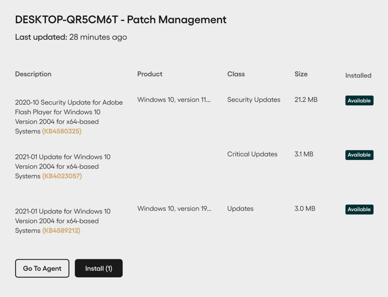 You can see all agents plus how many patches are missing in each agent. Last but by no means least, you can view by specific patches, to see which agents are missing that patch, and you can export this report data in a single click, to share with your clients, team, or even that online gaming friend you’ve never met in person.